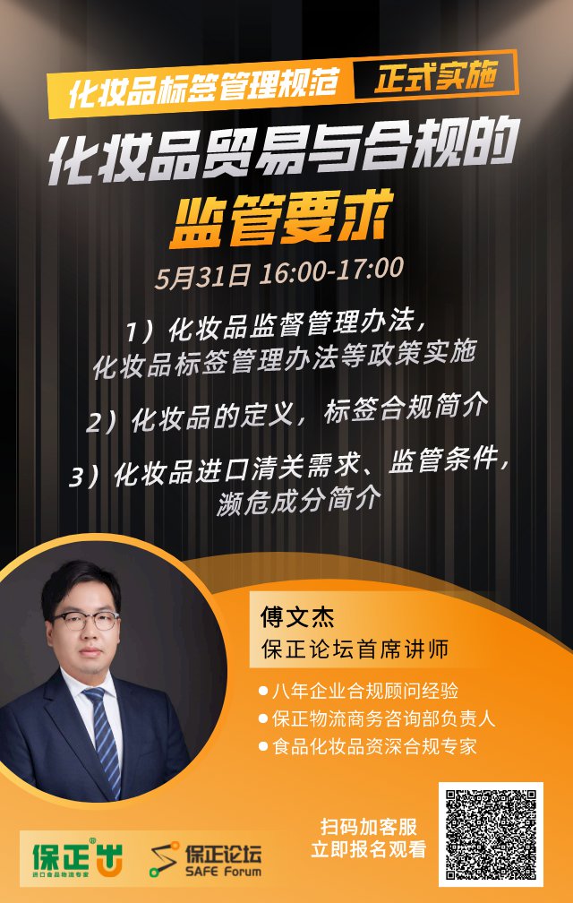 5月31日下午16:00-17:00,保正論壇直播間,專業的食品資深合規專家與您不見不散。歡迎掃描下方海報中的二維碼進(jìn)行報名!