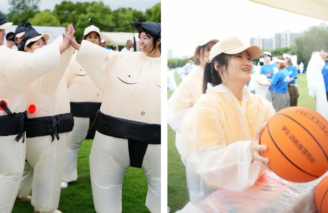 本場運動會(huì)共有超過(guò)50家企業,將(jiāng)近500人參與,采用個人賽和團體賽相結合形式,設置披荊斬棘、沖上雲霄、相撲足球、力拔山河、運動嘉年華等項目。